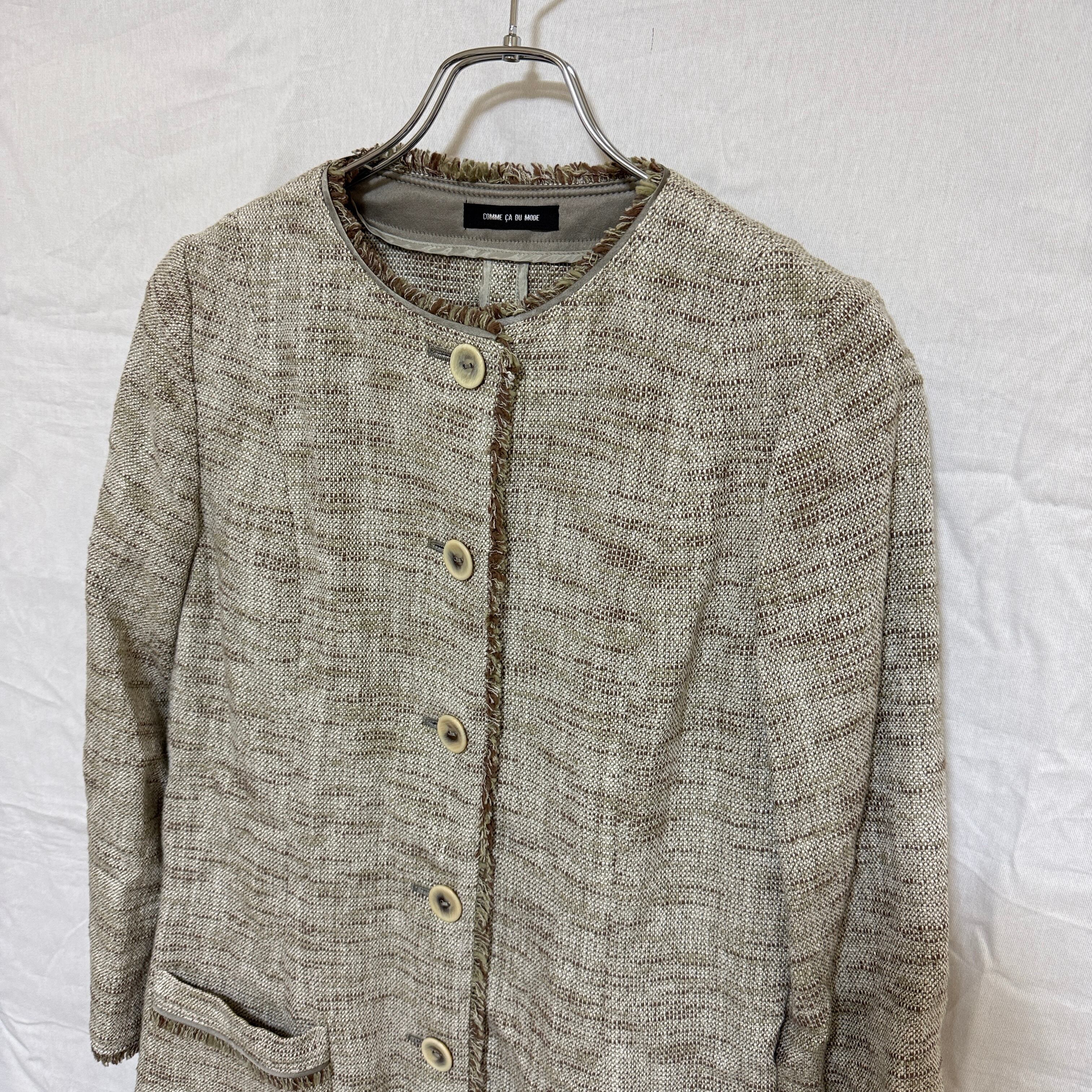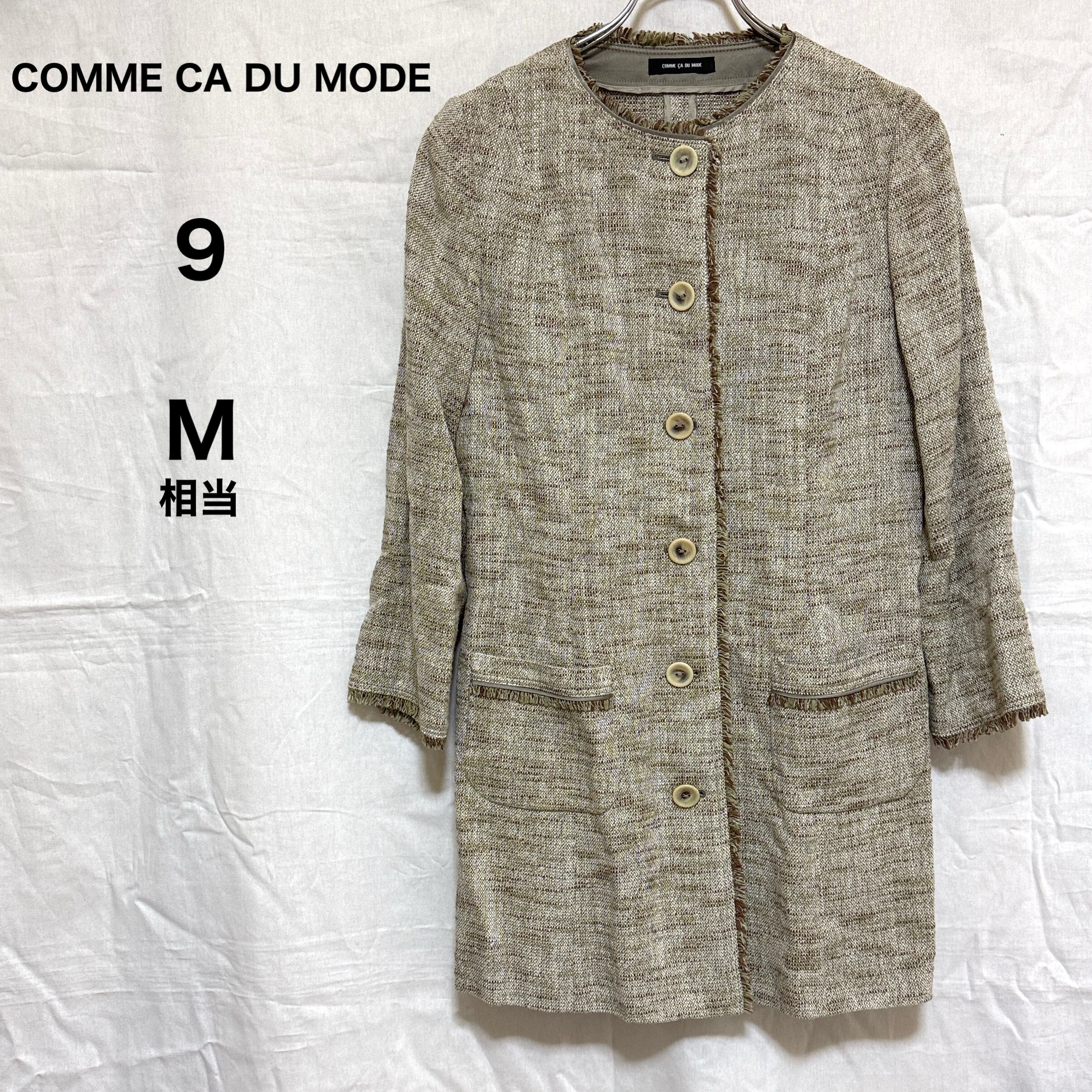 COMME CA DU MODE コムサ・デ・モード ノーカラーツイードコート ジャケット サイズ9 上品きれいめ セレモニーにも◎