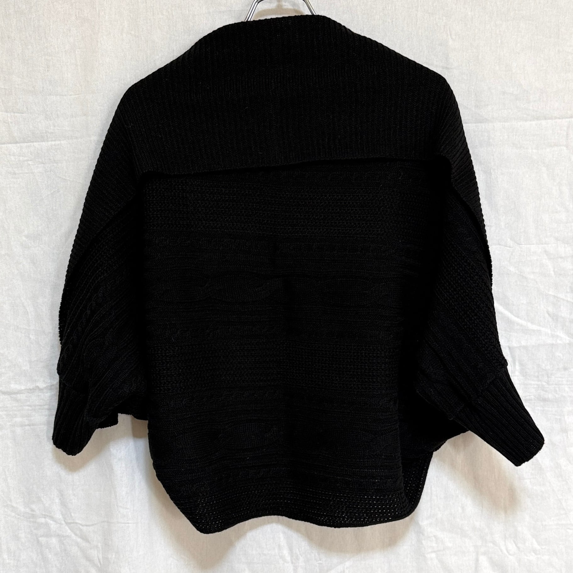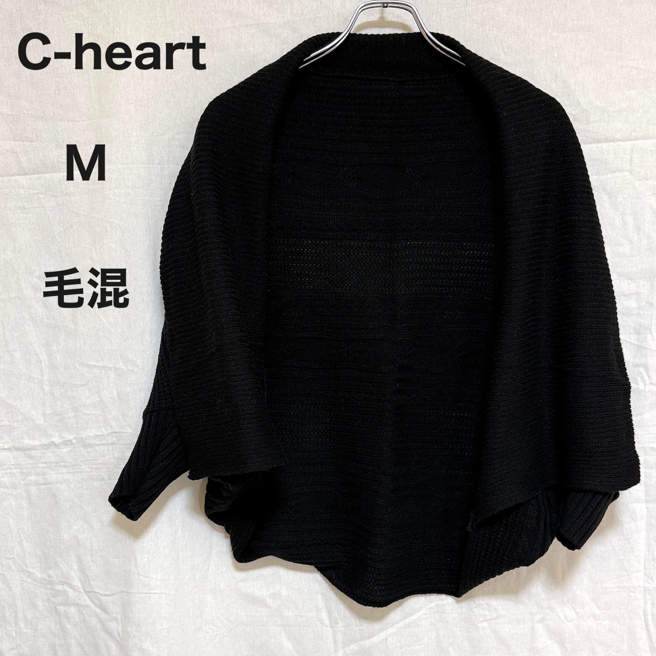 【M】 C-heart FORESIGHT カーディガン 黒 ブラック 日本製 毛混 ポンチョ風 ボレロ 羽織り ゆったり おしゃれ ニット 毛糸 ミセス マダム レディース