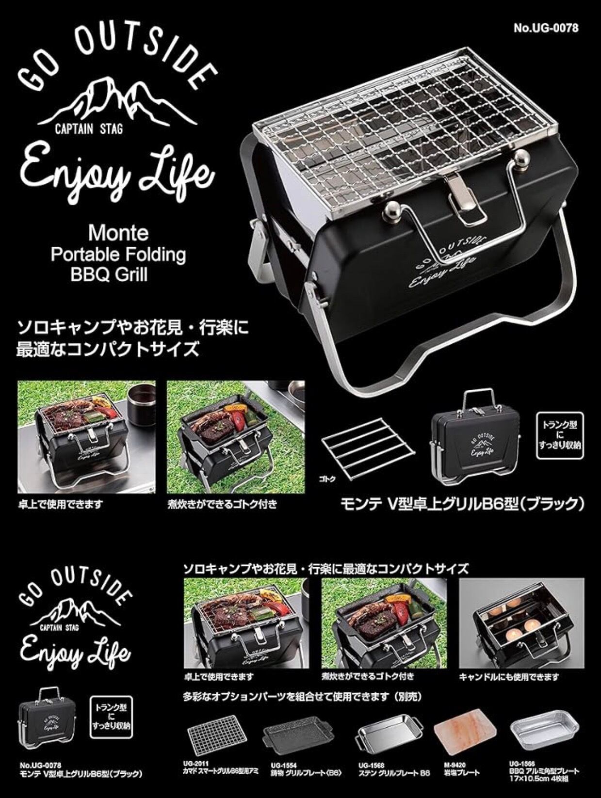 キャプテンスタッグ(CAPTAIN STAG) モンテ V型卓上グリル B6型 は、ソロキャンプ・お花見・ピクニックなどで使いやすいコンパクトサイズのバーベキューコンロ(卓上グリル)です。