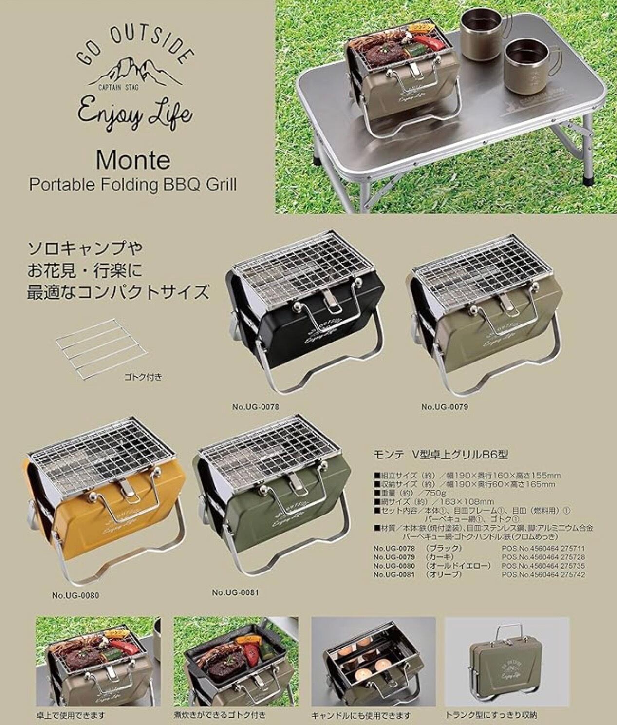 • セット内容:本体、燃料用目皿・フレーム、バーベキュー網、ゴトク(五徳)などが付属します。