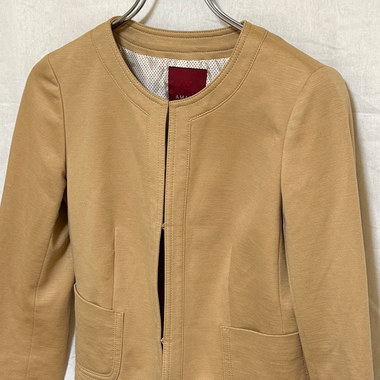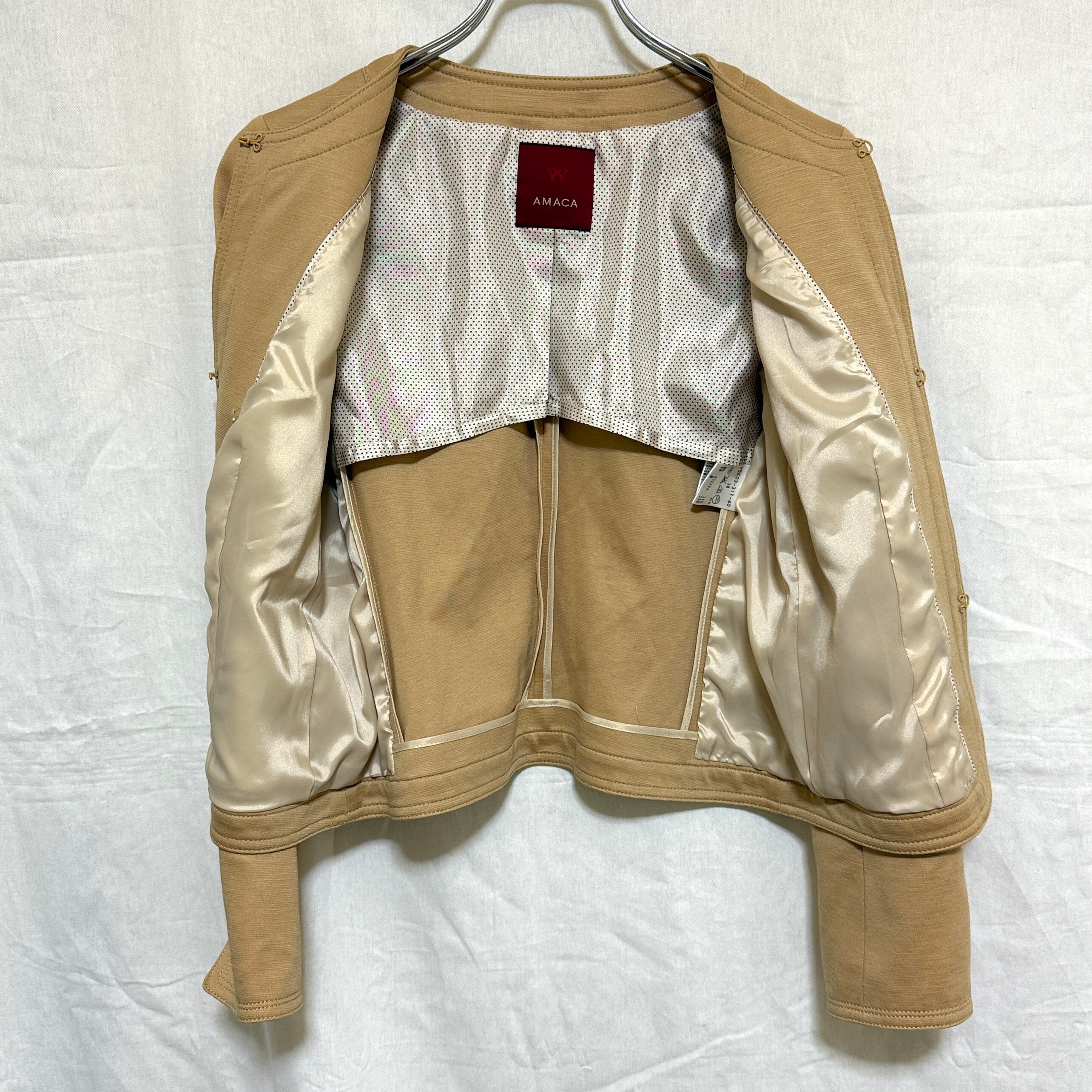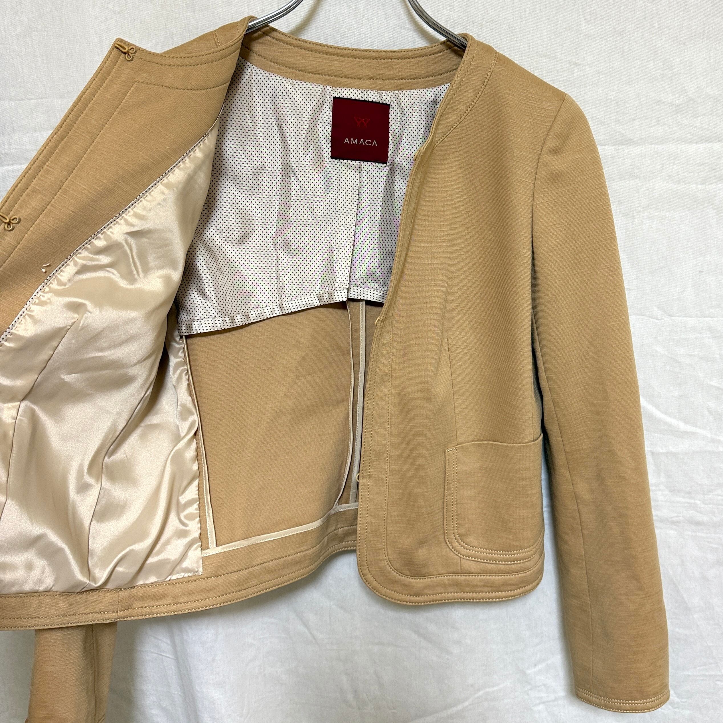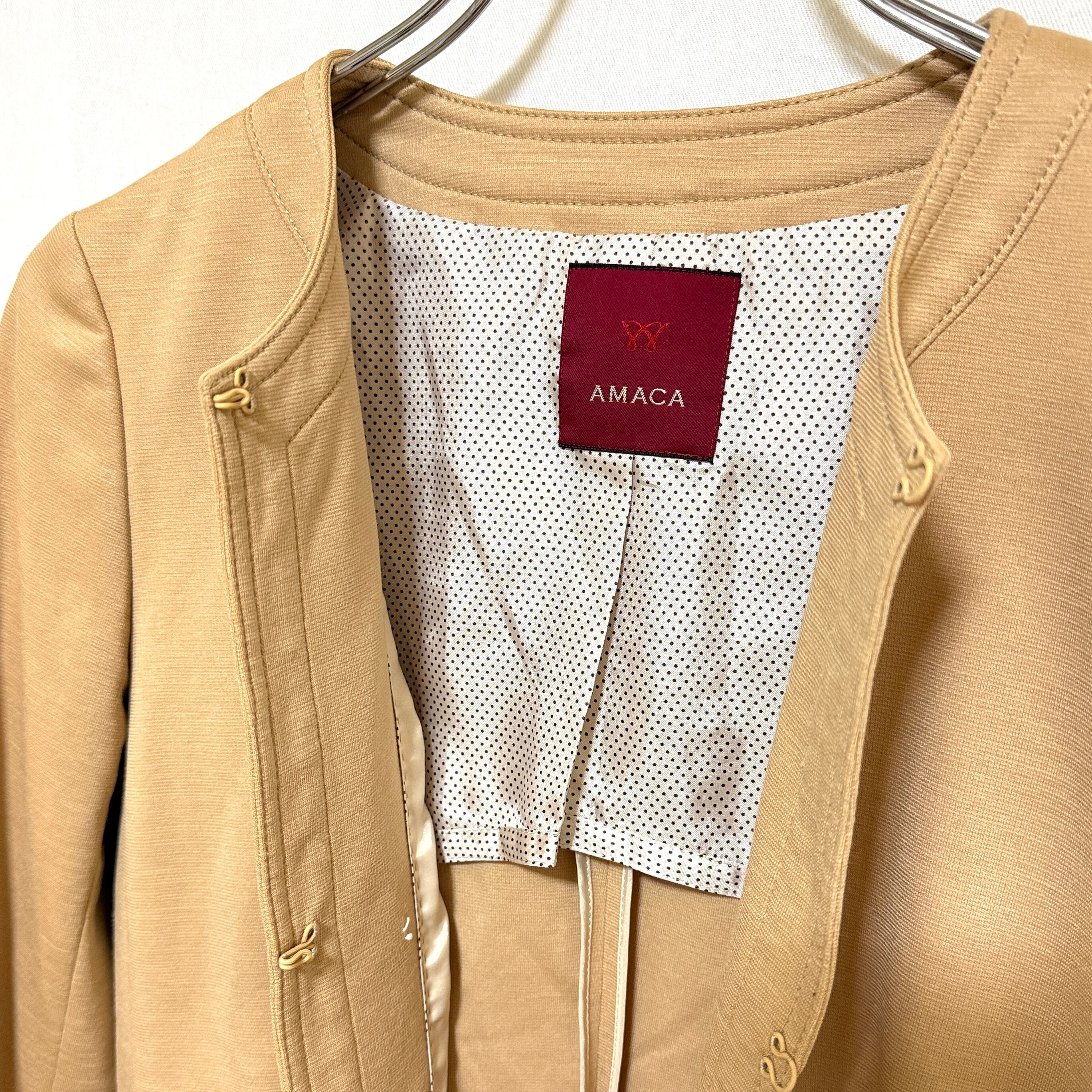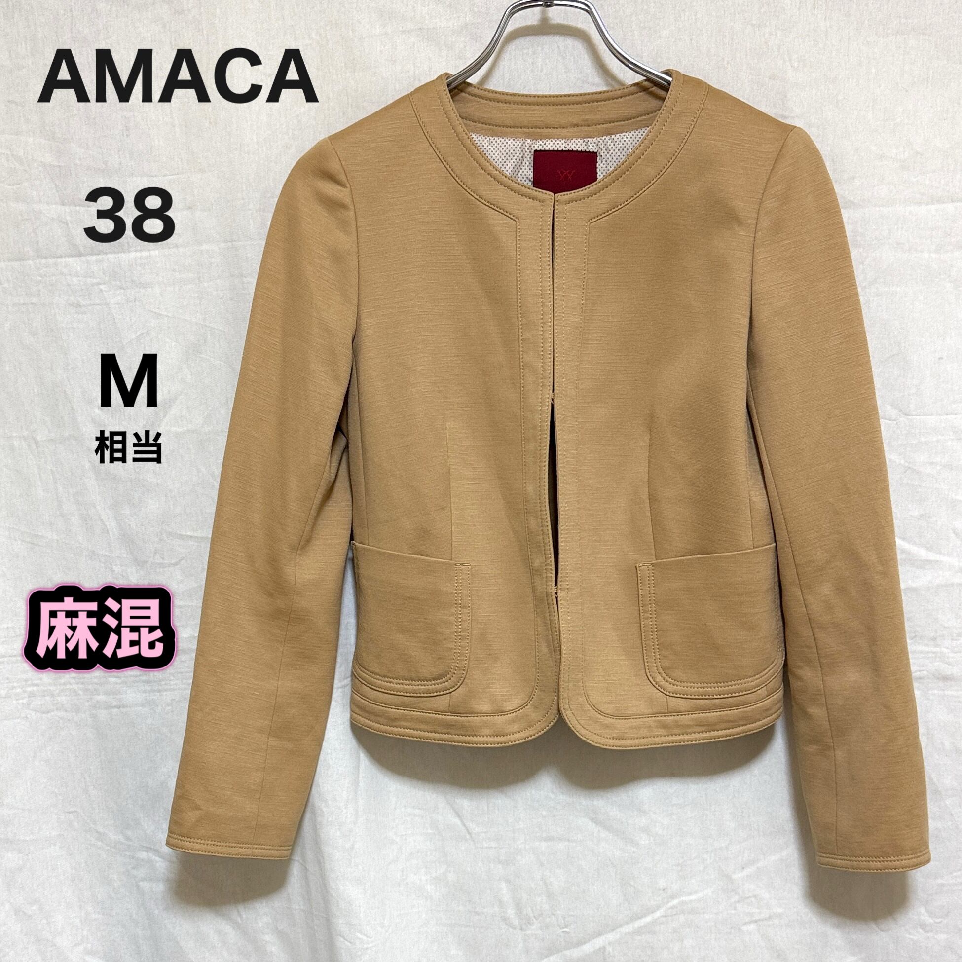 AMACA アマカ ノーカラージャケット ベージュ 38 麻混 M レディース 中古