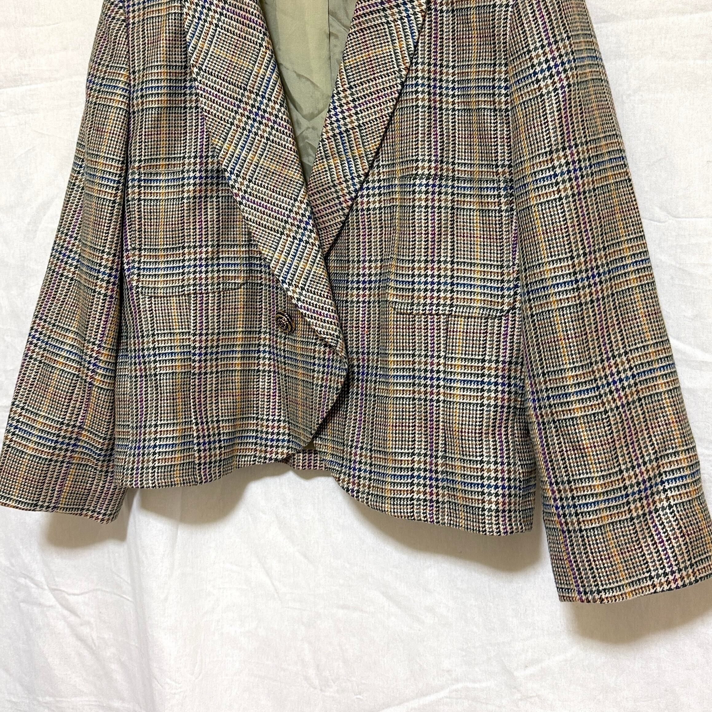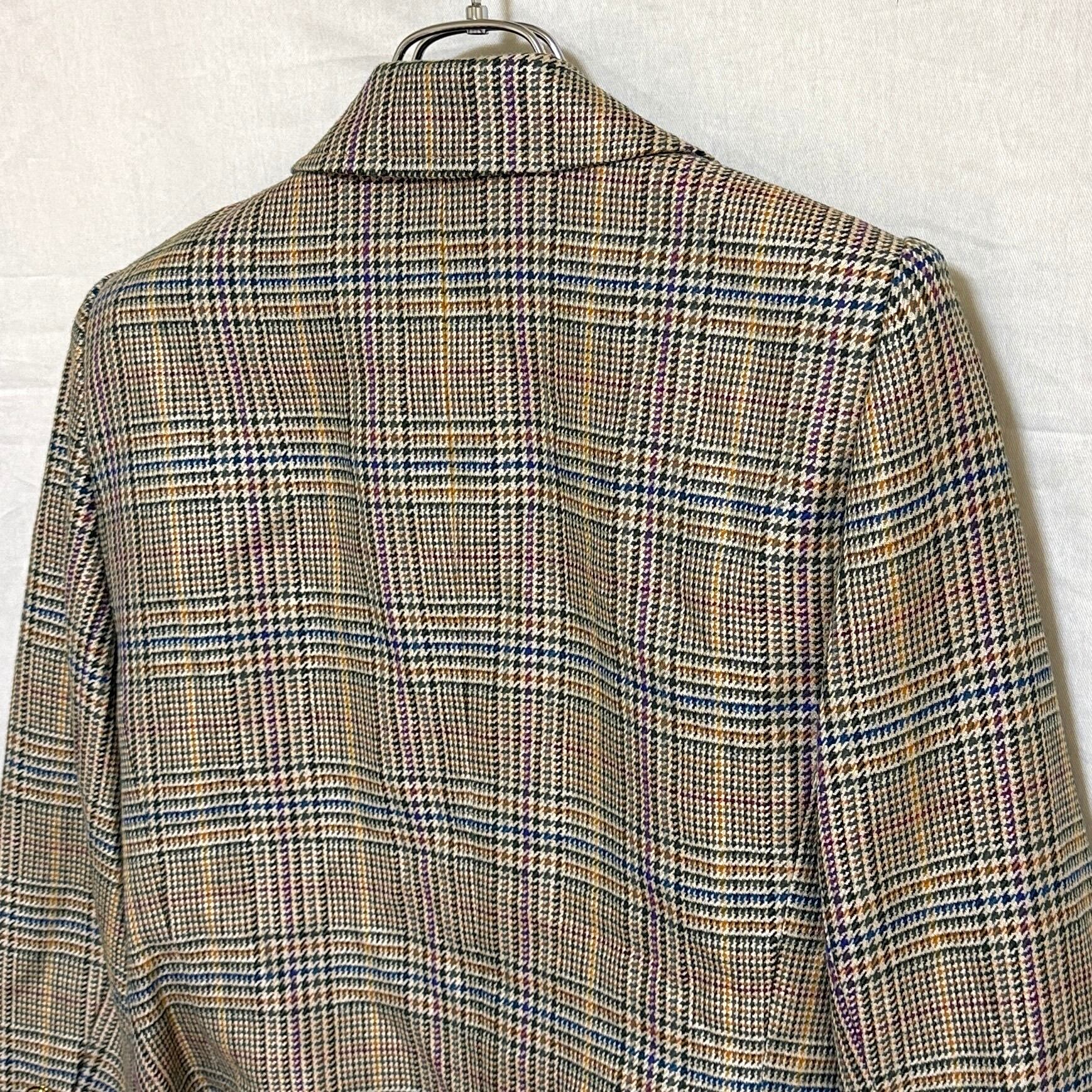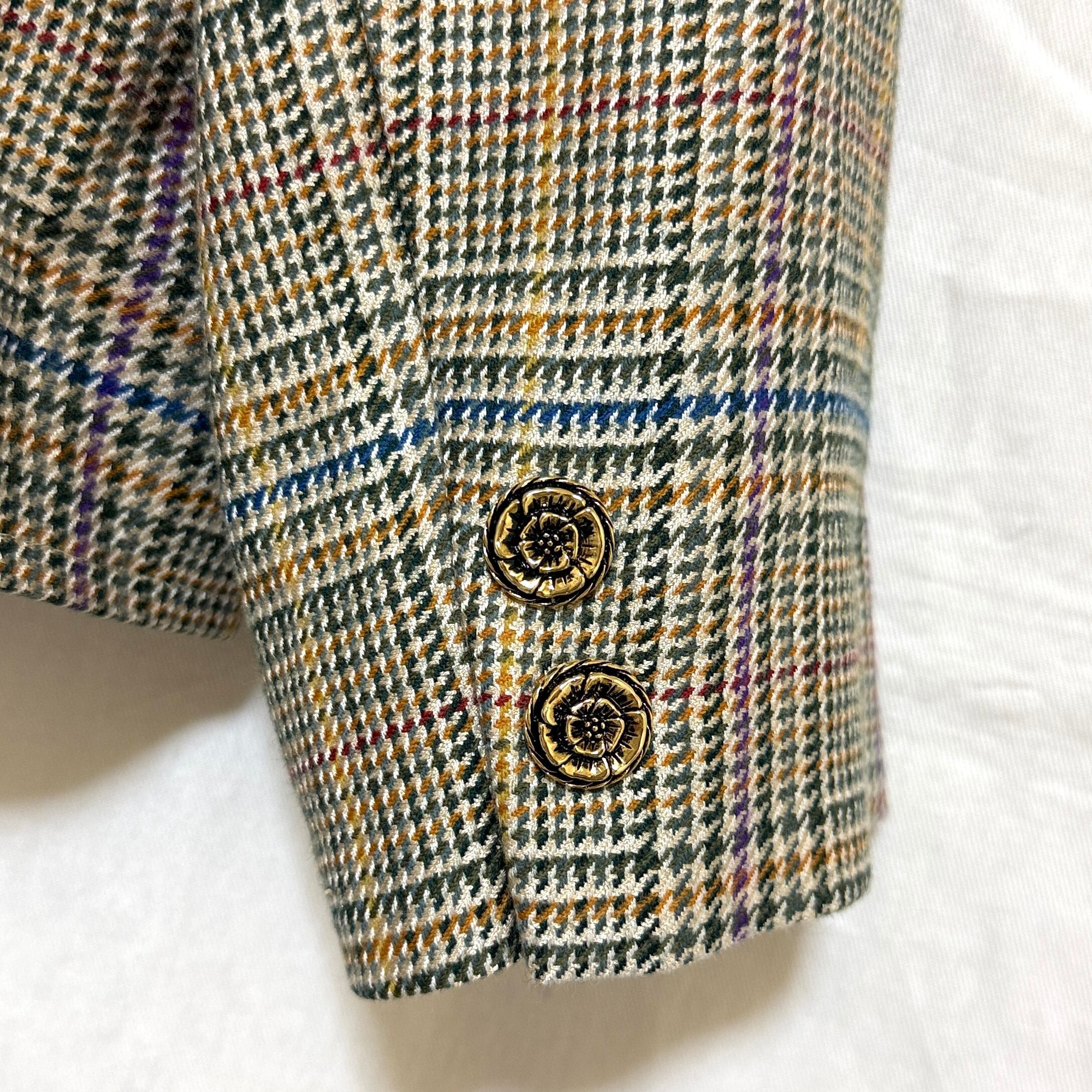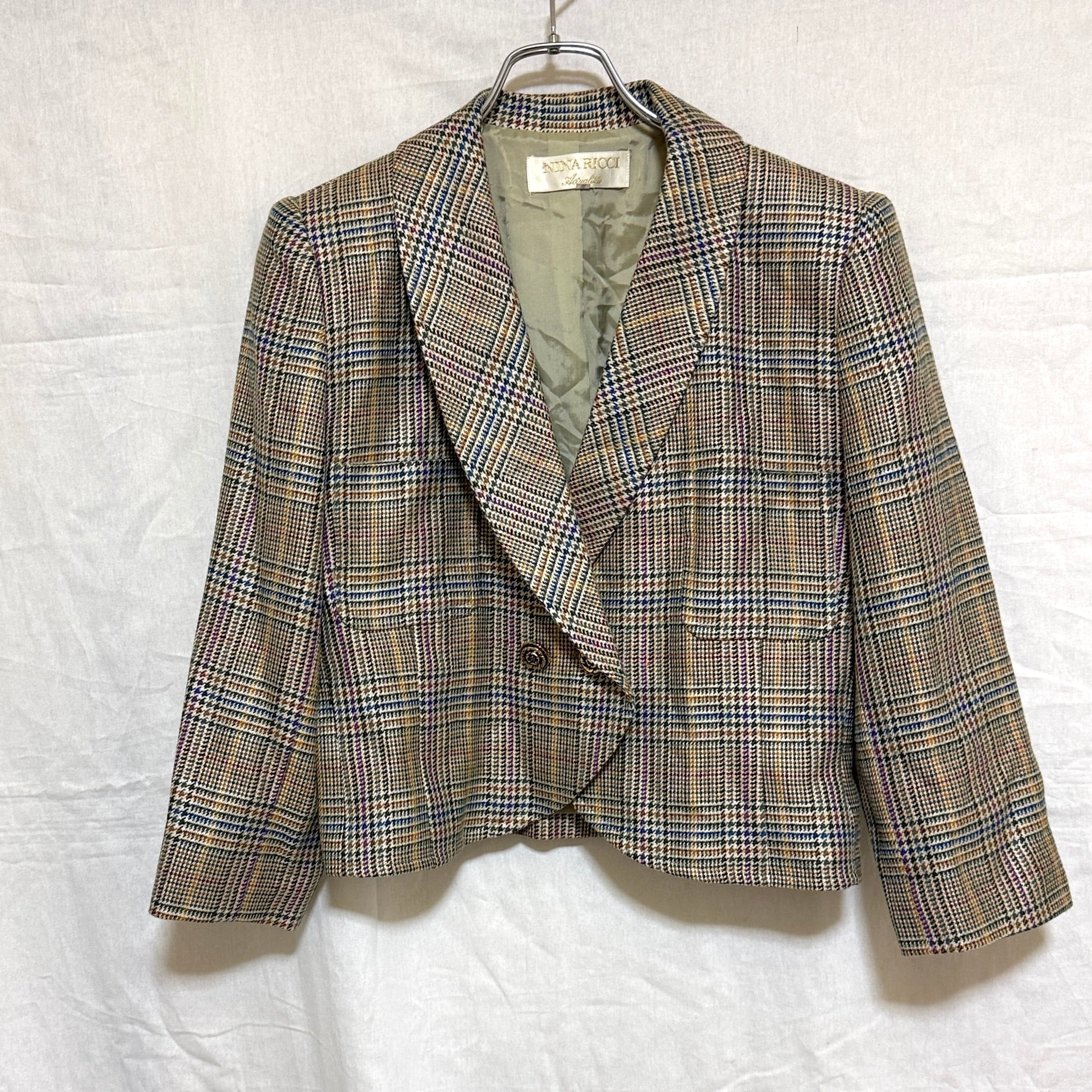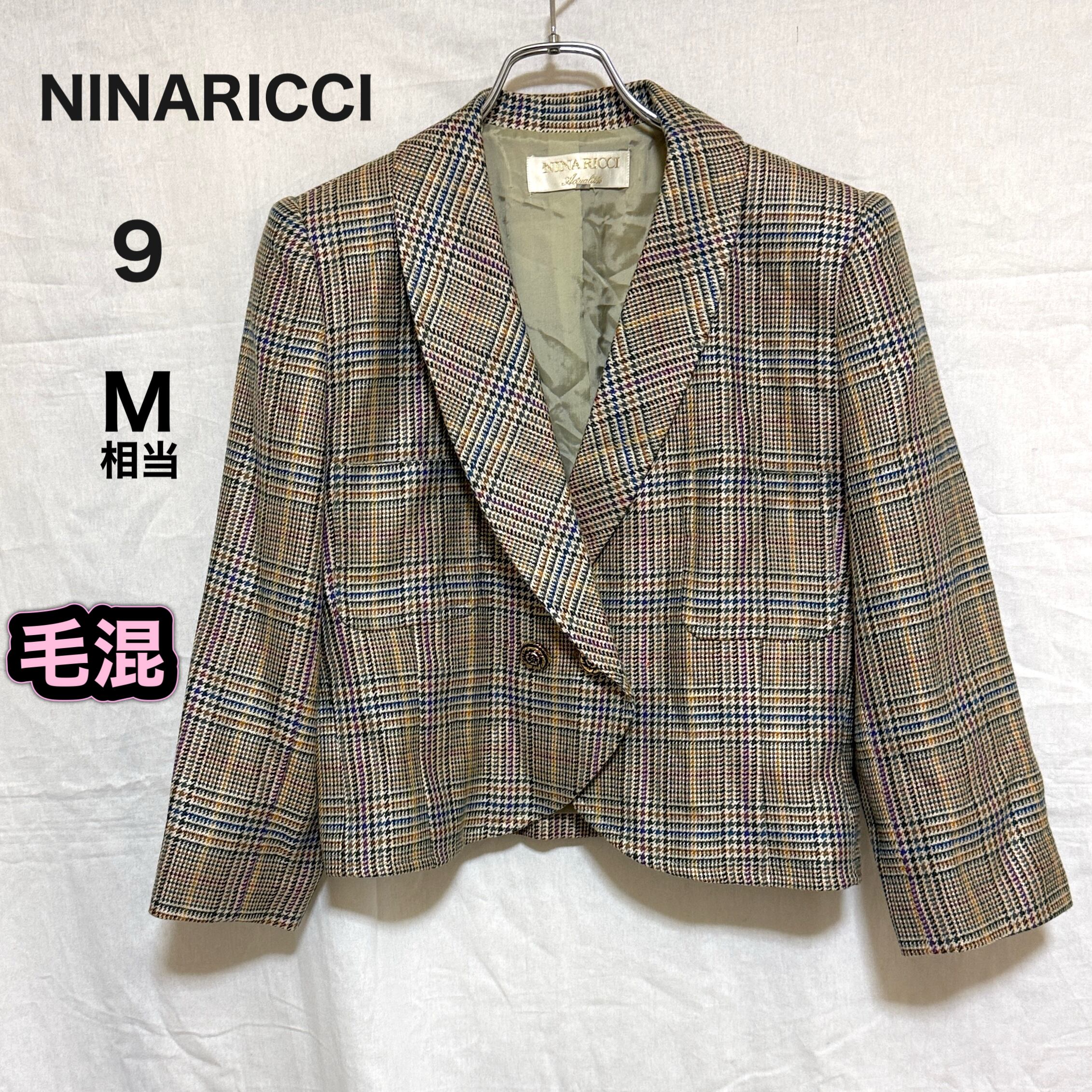 NINARICCI ニナリッチ 9 M テーラードジャケット チェック 金ボタン ダブル ショート丈 レディース 毛混
