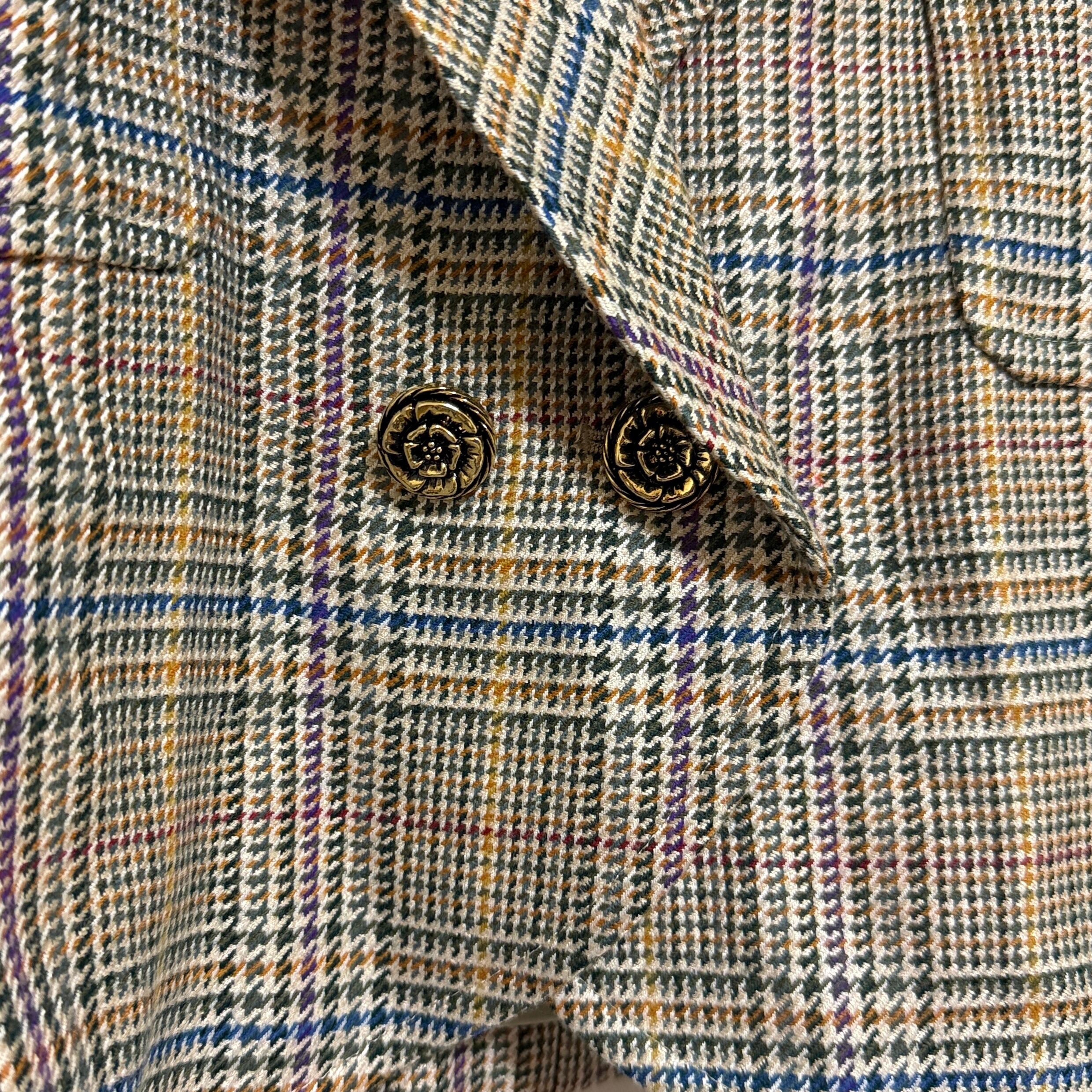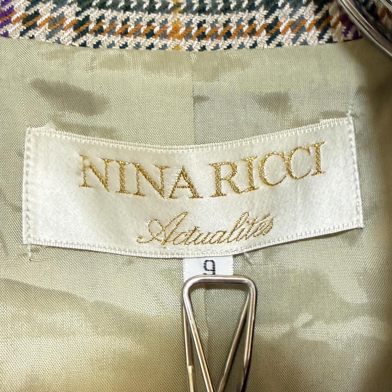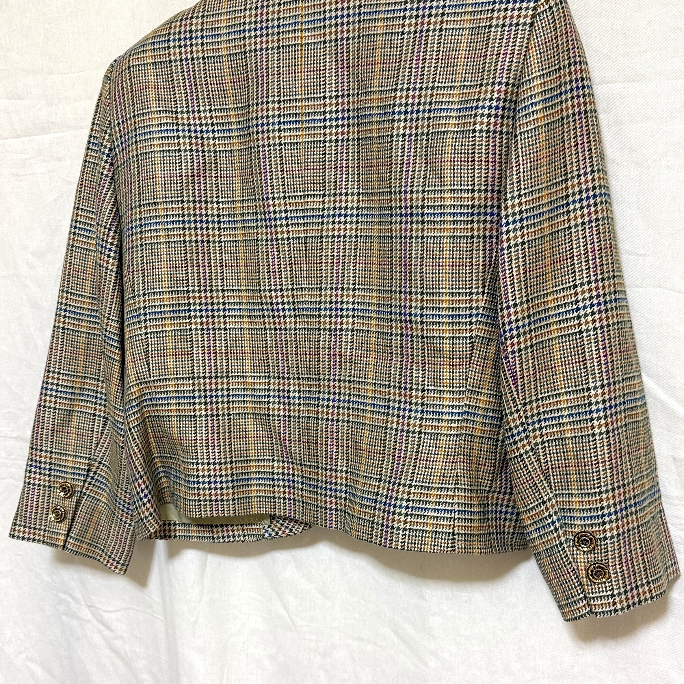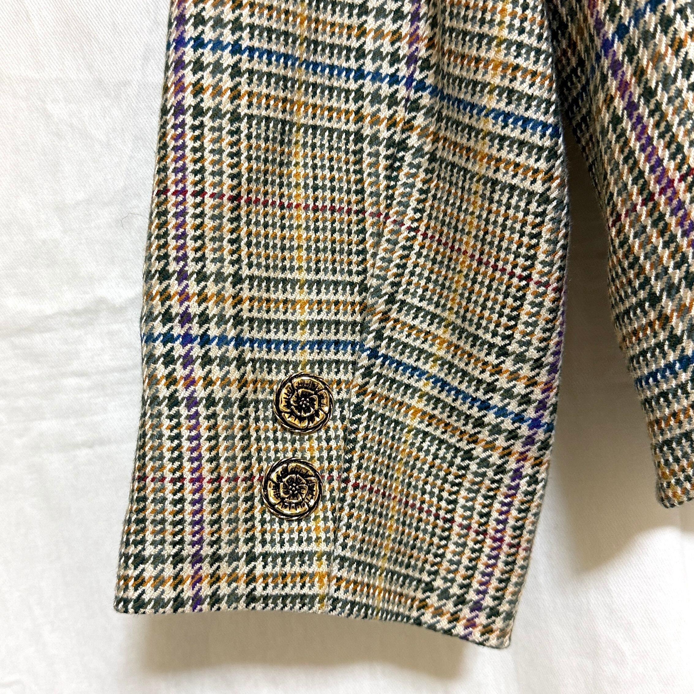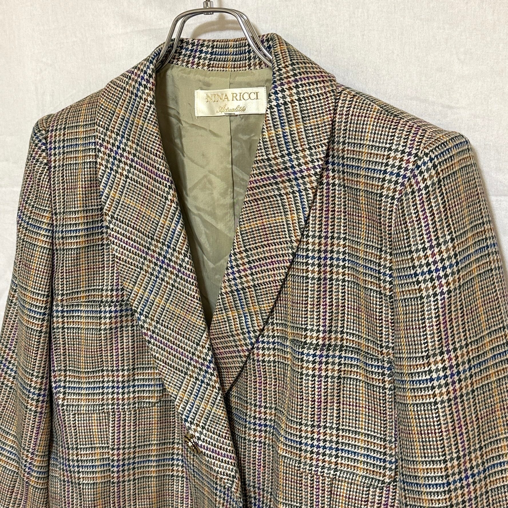 NINARICCI ニナリッチ 9 M テーラードジャケット チェック 金ボタン ダブル ショート丈 レディース 毛混